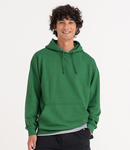 80% ringspun cotton/20% polyester.* Soft cotton faced fabric. Brushed back fleece. Drop shoulder style. Double fabric hood with self colour drawcord. Front pouch pocket. Ribbed cuffs and hem. Twin needle stitching.
